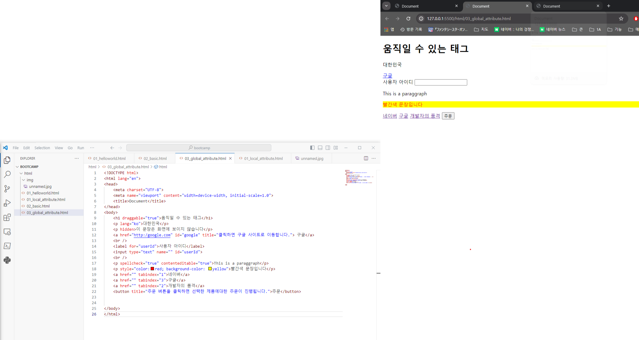 <h1 draggable="true">움직일 수 있는 태그</h1>