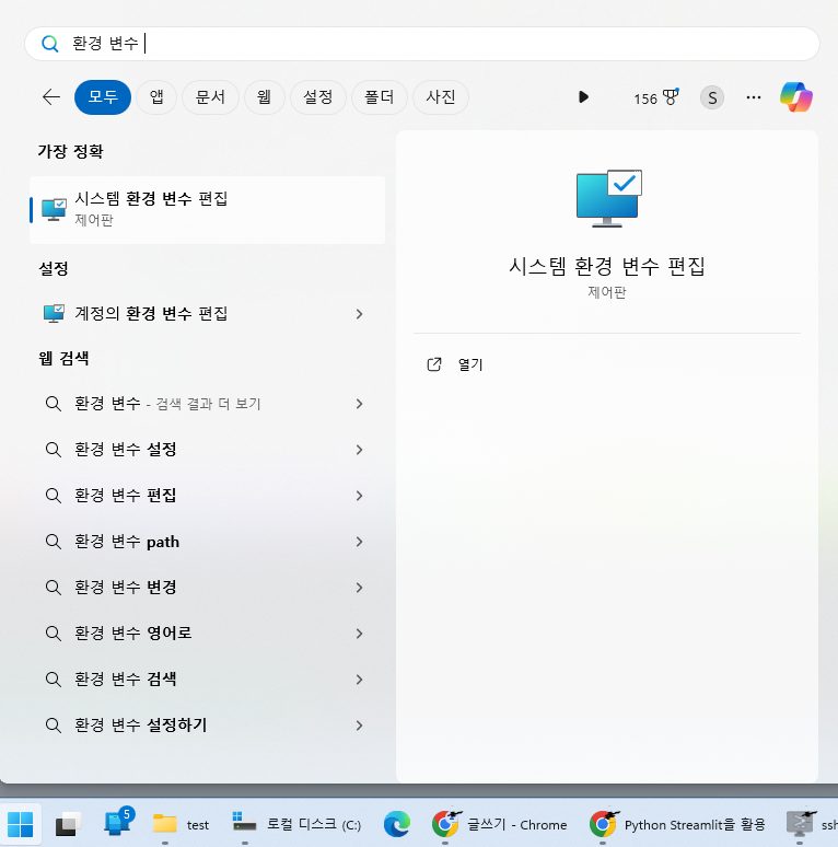 컴퓨터 자체에 변수를 부여 하고싶으면 시스템으로 path 를 찾아 선택